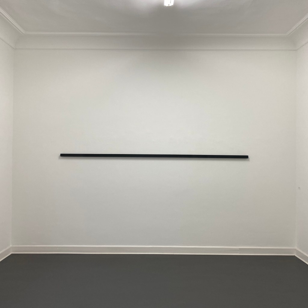 Charlton plays with shapes of his canvases making them almost sculptural, or at least blurring the line separating the two. Moreover, it nearly eradicates any border between the motif and the painting as such – it represents a line, it presents a line, it is a line. A small, but very effective gesture that feeds my curiosity about the boundaries of normalised categories.