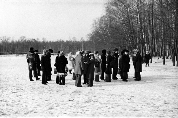 “In a typical Collective Actions performance, participants would be summoned by telephone or word of mouth, much like a modern-day rave party, to a field or a forest clearing outside Moscow where, often in the biting mid-winter cold, they would wait, shivering, for something to happen. The happening itself, surreal, sometimes pranksterish, often on the periphery of vision, might last only a few minutes; then the participants would go home again, to record and debate what they had seen or heard: A man with a balloon-head that he burst before himself disappearing? A singing kettle buried steamily in the snow? A bark without a dog?” (“A Russian Guru at Work in Venice” by Claudia Barbieri, The New York Times, June 13, 2011)
