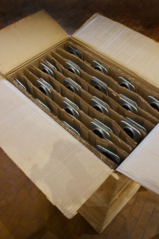 This also reminds me of a project I made in my very early days of art school – a sculptural installation that I presented packed down in the crate on a lift truck. The audience could get some view of the piece by looking through gaps in the “poorly taped” cardboard of the casing – if they recognised my installation as an artwork at all, and not as a new delivery to the workshop, that is. It is interesting to consider what packaging adds to the meaning of the packaged, how it suggests a liminal state between points of departure and delivery, a temporarily suspended identity of its contents, for the time being being just a parcel in transit…