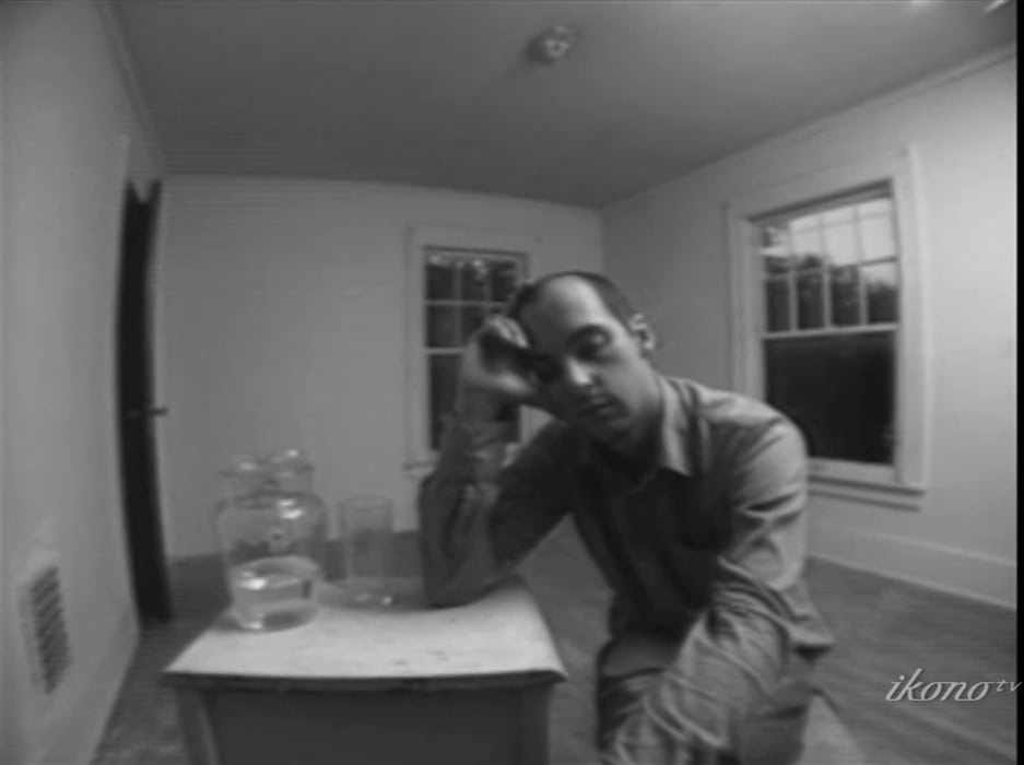 This piece is of interest to me due to its sonic installation in the gallery. Visitor is expected to sit on a chair facing a TV set with large speakers in the corners of the room providing ambient sounds of the video and headphones installed in the chair play unrealistically close and distinct body sounds of the protagonist of the video.
