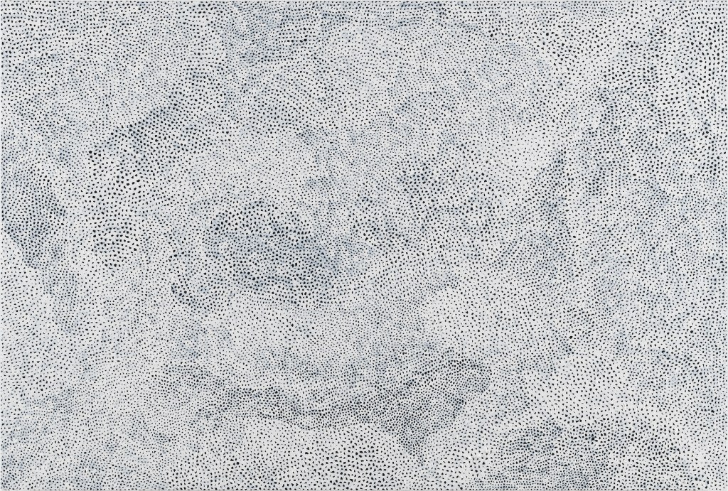 This may be odd, but I do relate Kusama’s Infinity Nets paintings to my dotted paintings. It’s a bit of a negative here – she is painting the actual strands of the net, I am making the dots, a kind of opposite of that. But there is some occasional visual affinity even if my stuff is not even nearly as sophisticated or well executed as hers. But there is something about spatiality appearing out of nowhere, eyes being tricked to follow the lines, to reinterpret shifting sizes as shifts in distance… which must be an acquired way of seeing perspectival drawings… apart from the space there is also some dynamics, perhaps the same slide of the eye along the lines that makes it… but whatever it is, it is interesting… there is nothing in particular to look at, no obvious “centre piece” and yet, while sliding around, looking for it, trying to take in whatever that makes itself available, I am entertained, I am having quite a durational experience, like listening to the music…